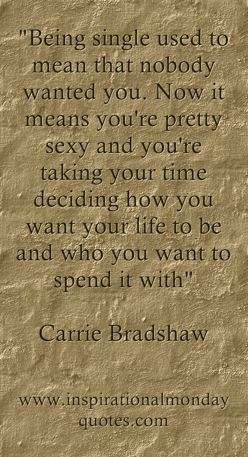 "Being single used to mean that nobody wanted you. Now it means you're pretty sexy and you're taking your time deciding how you want your life to be and who you want to spend it with"